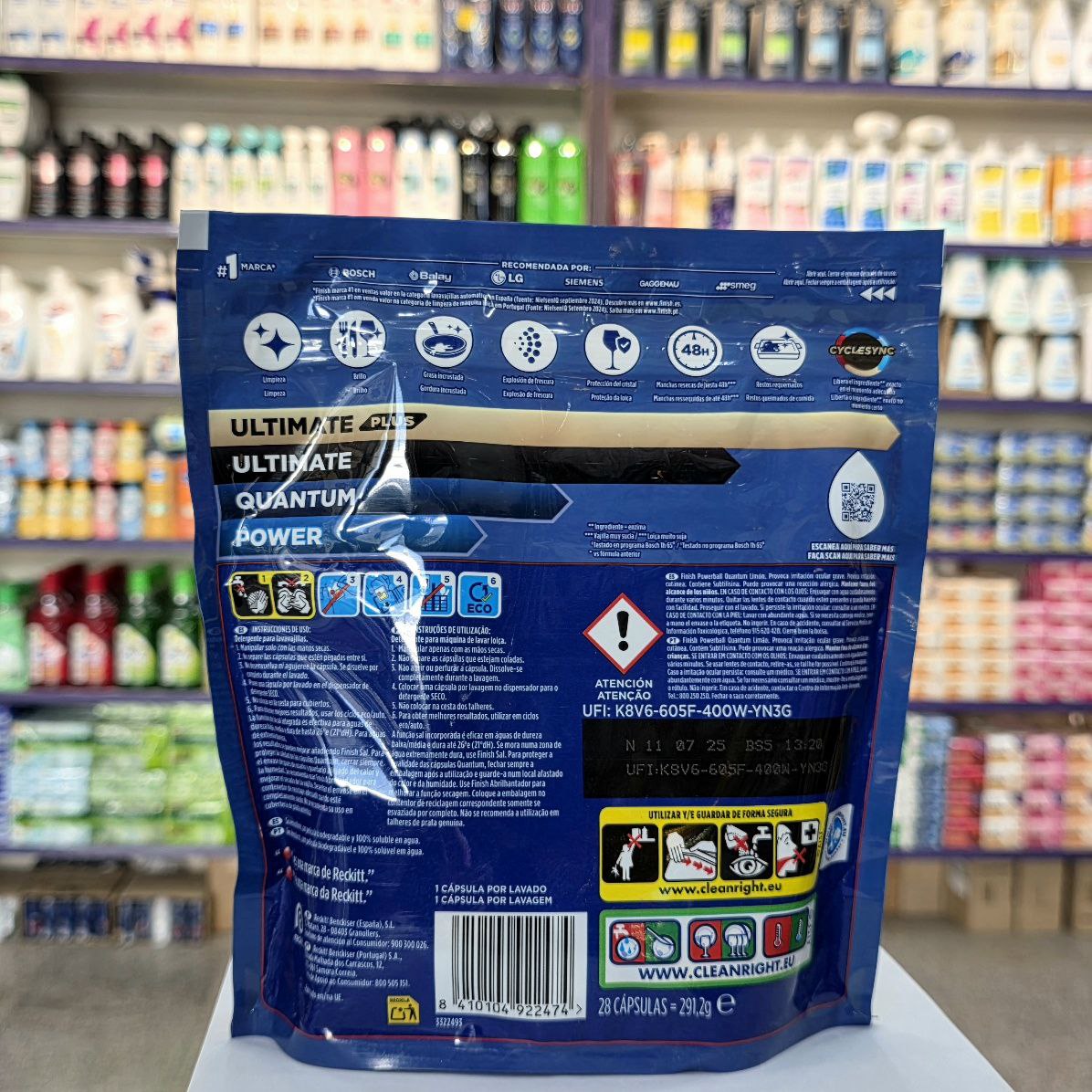 قرص ماشین ظرفشویی Finish Powerball Quantum – بسته ۲۸ عددی لیمویی | شستشو و درخشان‌کننده حرفه‌ای